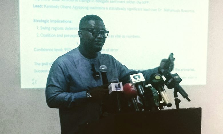 The findings were presented by Dr. Evans Duah, a strategist and economist, at a press briefing held at the British Council in Accra, under the theme “A Case Study of the NPP Presidential Primaries — September-October 2025 Polls.”