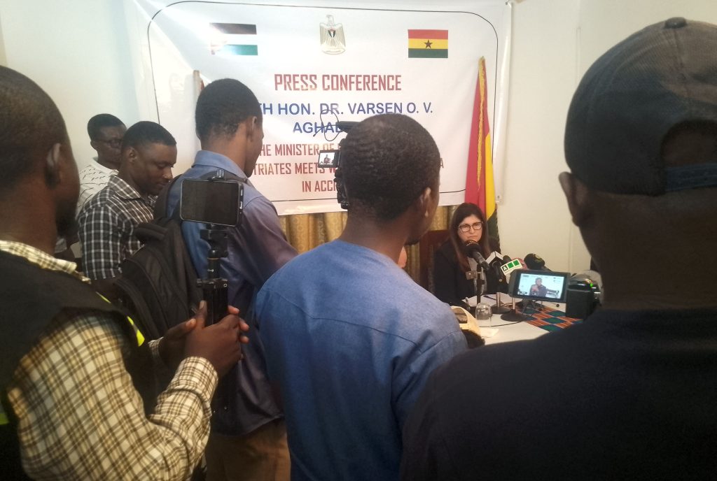 Addressing the press at a media encounter dubbed “Palestinian Foreign Minister Meets with the Ghanaian Media” at the Embassy of the State of Palestine in Accra, Dr. Aghabekian conveyed warm greetings from Palestinian President H.E. Mahmoud Abbas, the Government of Palestine, and Palestinians in the West Bank, East Jerusalem, and the Gaza Strip.